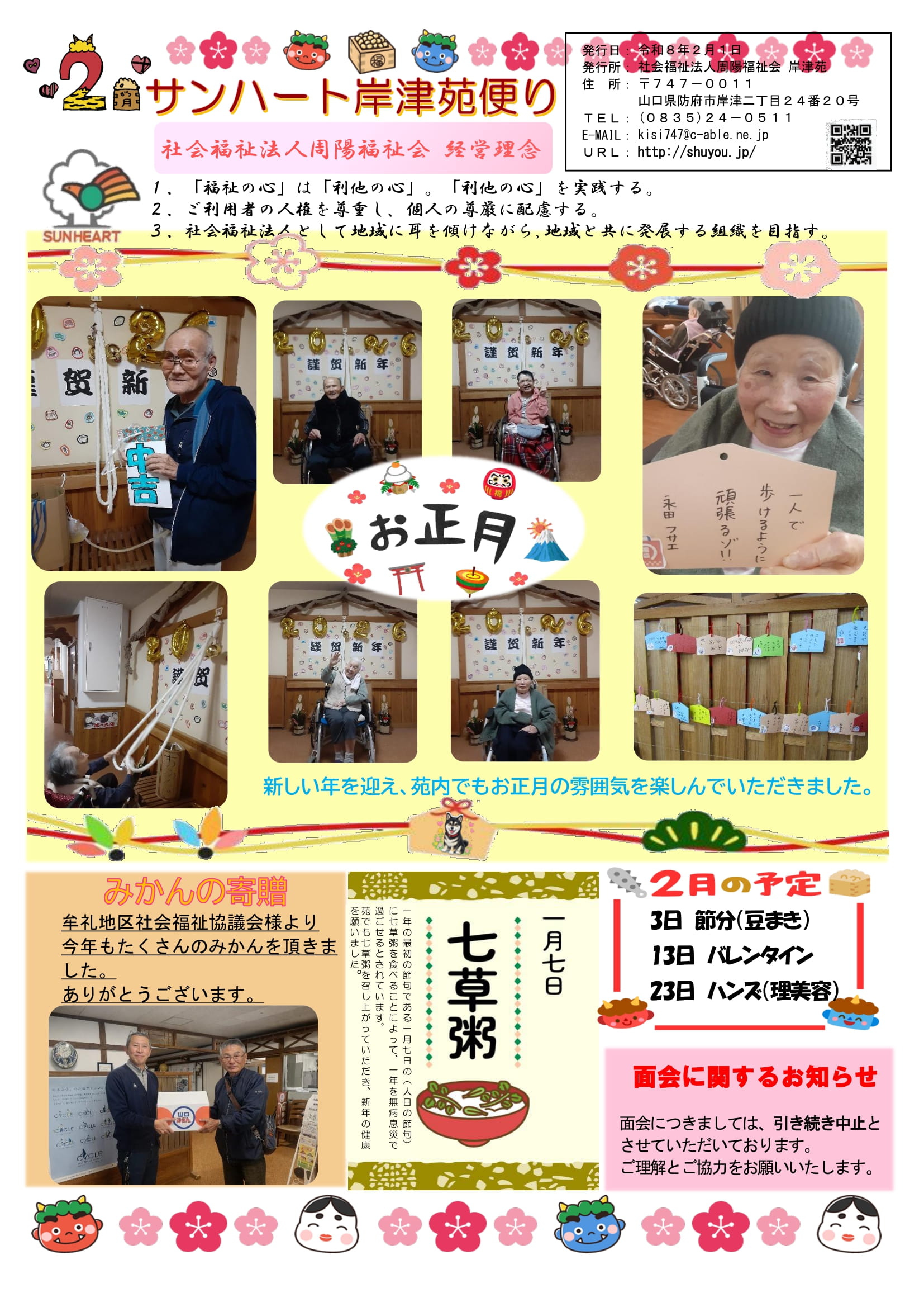 毎号、スタッフが心を込めて手作りしています。 苑の催し物の様子や地域の皆さんとの交流風景などをお届けしています!